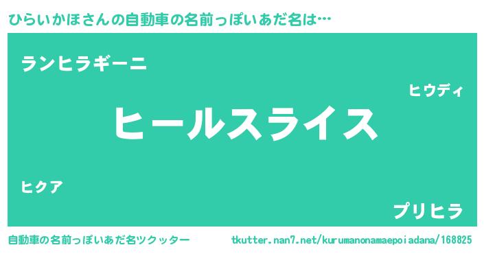 ひらいかほさんの自動車の名前っぽいあだ名をツクッター!