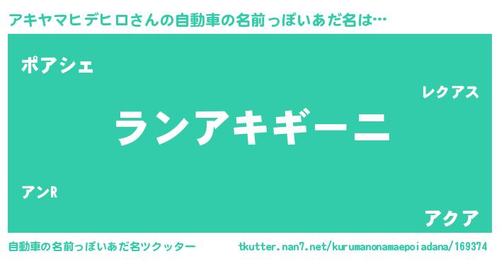 | 意味不明あだ名 | 『住所不定無職アキヤマヒデヒロ(79歳)』 |