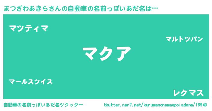 | 欧米人風あだ名 | 『まつざわあきらクリステル』 |