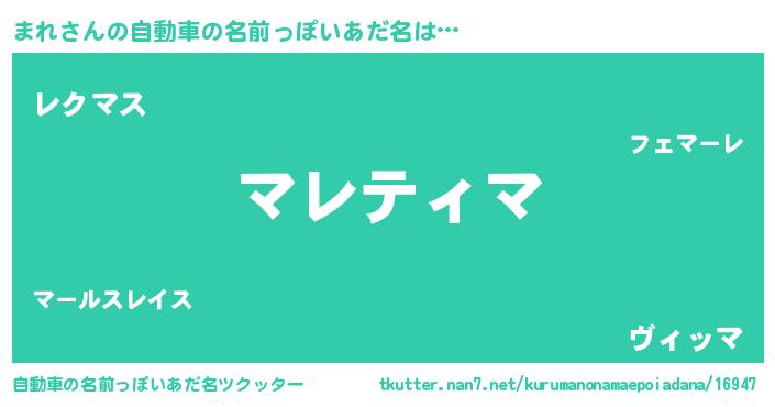 | ファンタジー風あだ名 | 『マレフェル』『ゼマレトゥ』 |