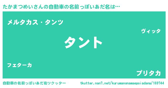 | 男性向けラノベタイトル風あだ名 | 『たかまつめいの嫁は女の子じゃないと思った?』 |