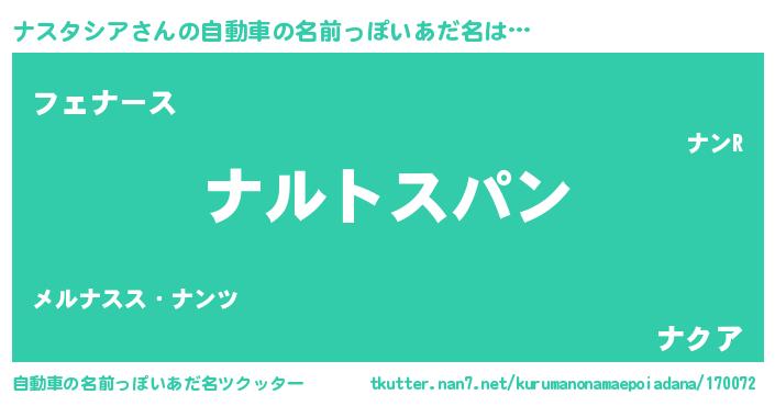 | 胡散臭い通販商品みたいなあだ名 | 『信頼と実績のサプリメント…その名も「ナスタシア」』 |