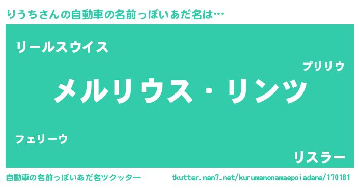 | 男性向けラノベタイトル風あだ名 | 『Re:りうちから始める異世界生活』 |