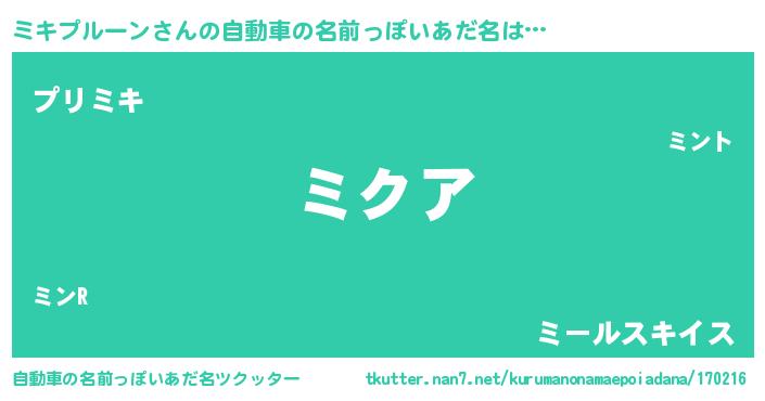 | 意味不明あだ名 | 『ミキプルーンフォーエバー』 |