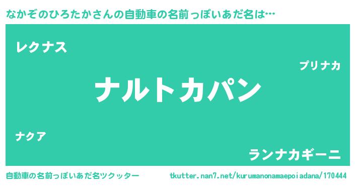 | 胡散臭い通販商品みたいなあだ名 | 『信頼と実績のサプリメント…その名も「なかぞのひろたか」』 |