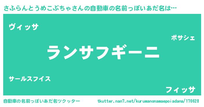 | 胡散臭い通販商品みたいなあだ名 | 『来世でも幸せになれる水素水…その名も「さふらんとうめこぶちゃ」』 |