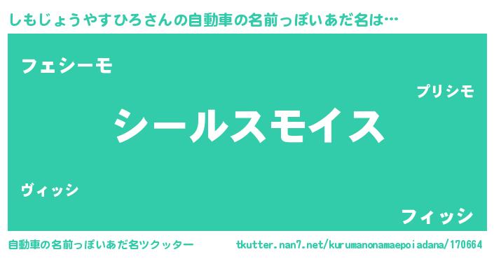 | 女子向けラノベタイトル風あだ名 | 『しもじょうやすひろの玉の輿計画!』 |