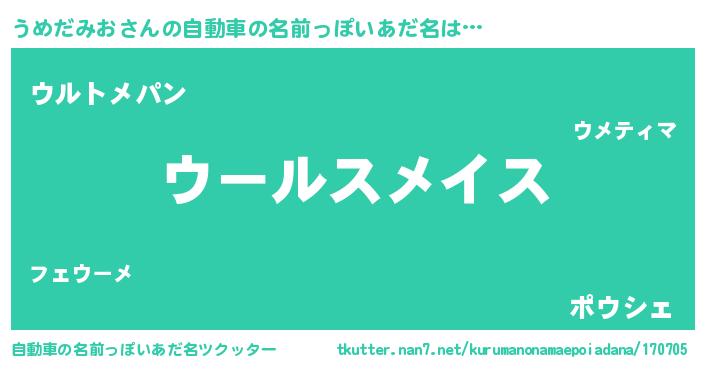 | 男性向けラノベタイトル風あだ名 | 『ウメダミオスレイヤー』 |