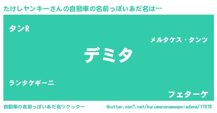| 男性向けラノベタイトル風あだ名 | 『たけしヤンキーという概念が存在しない退屈な世界 』 |