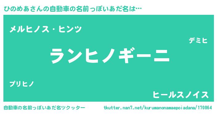 | 男性向けラノベタイトル風あだ名 | 『ひのめあに滅ぼされるだけの簡単なお仕事です』 |
