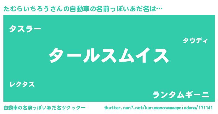 | 男性向けラノベタイトル風あだ名 | 『たむらいちろう~年齢イコール彼女いない歴の魔法使い~』 |