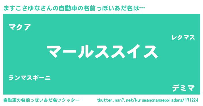 | 男性向けラノベタイトル風あだ名 | 『ますこさゆな~年齢イコール彼女いない歴の魔法使い~』 |