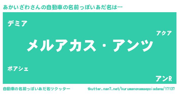 | 男性向けラノベタイトル風あだ名 | 『Re:あかいざわから始める異世界生活』 |