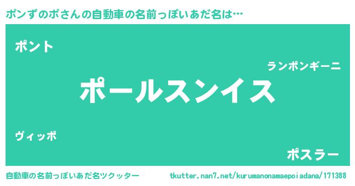 | 男性向けラノベタイトル風あだ名 | 『転生したらポンずのポだった件』 |