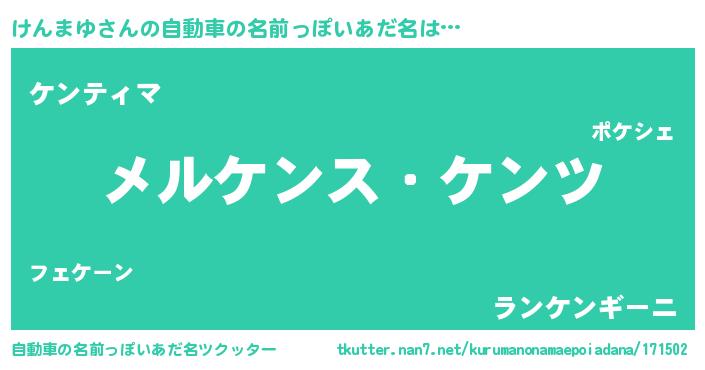 | 男性向けラノベタイトル風あだ名 | 『Re:けんまゆから始める異世界生活』 |