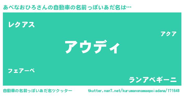 | 男性向けラノベタイトル風あだ名 | 『魔弾の王とあべなおひろ』 |