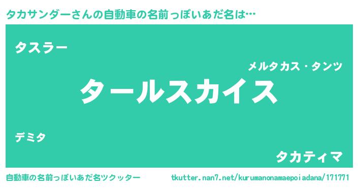 | 女子向けラノベタイトル風あだ名 | 『タカサンダーの玉の輿計画!』 |