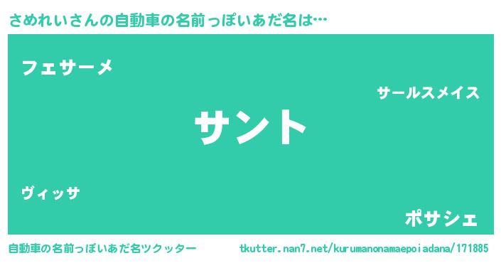 | 意味不明あだ名 | 『とにかく怪しいさめれい』 |