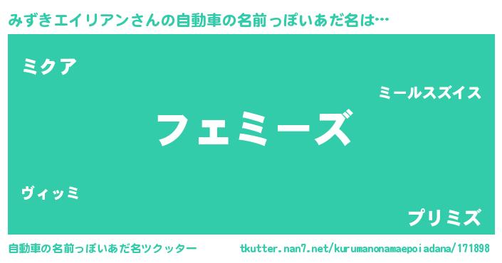| 男性向けラノベタイトル風あだ名 | 『緋弾のミズキエイリアン』 |