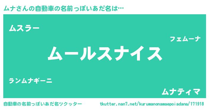 | ヘコむあだ名 | 『豆乳』『ムナもー』『ムナぷりん』 |
