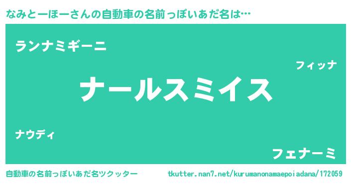 | 男性向けラノベタイトル風あだ名 | 『なみとーほー~年齢イコール彼女いない歴の魔法使い~』 |