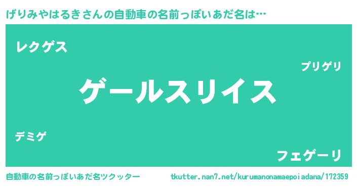 | 男性向けラノベタイトル風あだ名 | 『転生したらげりみやはるきだった件』 |