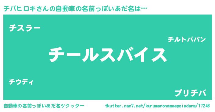 | 男性向けラノベタイトル風あだ名 | 『チバヒロキ~年齢イコール彼女いない歴の魔法使い~』 |