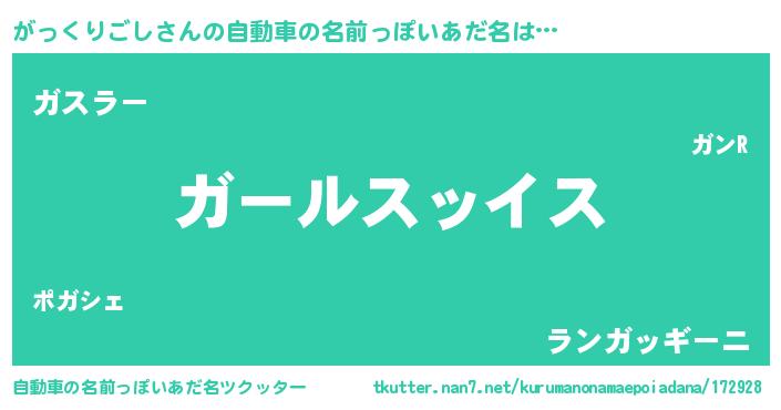 がっくりごしさんの自動車の名前っぽいあだ名をツクッター!