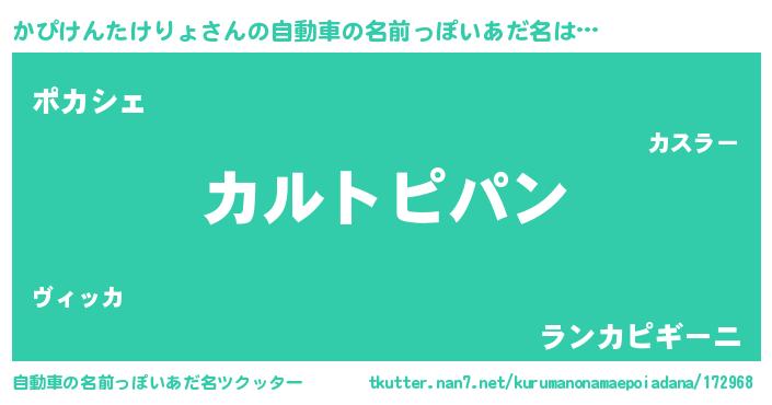| 胡散臭い通販商品みたいなあだ名 | 『信頼と実績のペンダント…その名も「かぴけんたけりょ」』 |