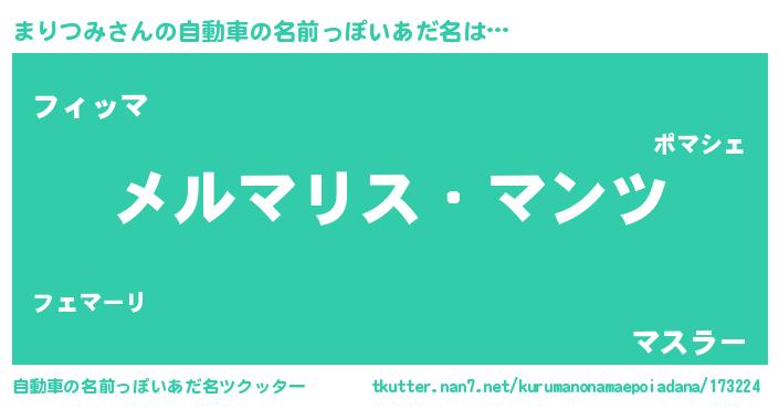 | 男性向けラノベタイトル風あだ名 | 『Re:まりつみから始める異世界生活』 |