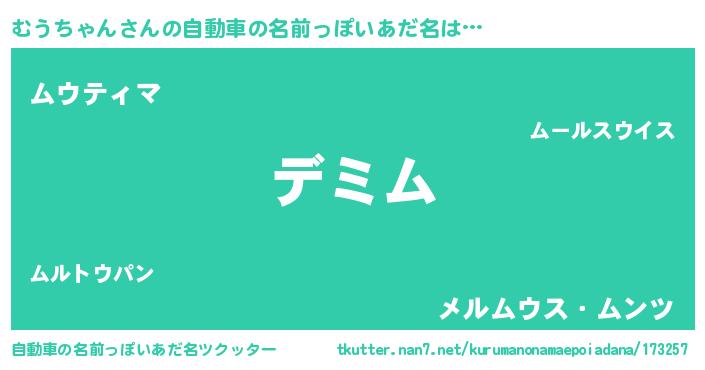 | 女子向けラノベタイトル風あだ名 | 『異世界で失敗しない100のむうちゃん』 |
