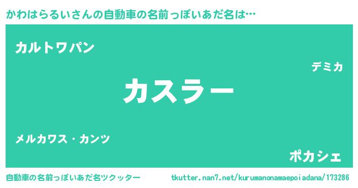 | ポケモン風あだ名 | 『カワハダネ』『ヒカワハラルイ』 |