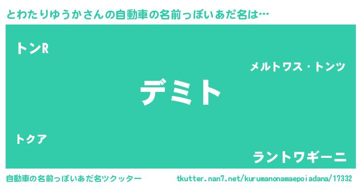 | ヘコむあだ名 | 『とわたりゆうか(笑)』『酢こんぶ』 |