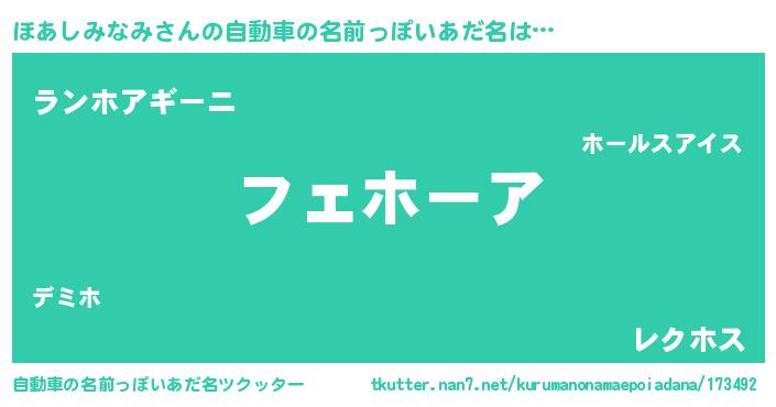 | 意味不明あだ名 | 『自称ほあしみなみ』 |