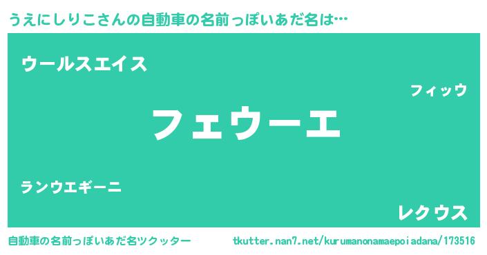 | 欧米人風あだ名 | 『うえにしりこ・ステッグマイヤー』 |