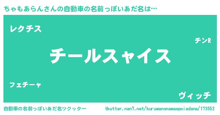 | 男性向けラノベタイトル風あだ名 | 『転生したらちゃもあらんだった件』 |