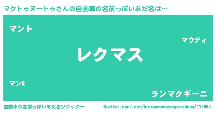 | 意味不明あだ名 | 『自称マクトゥヌートゥ』 |