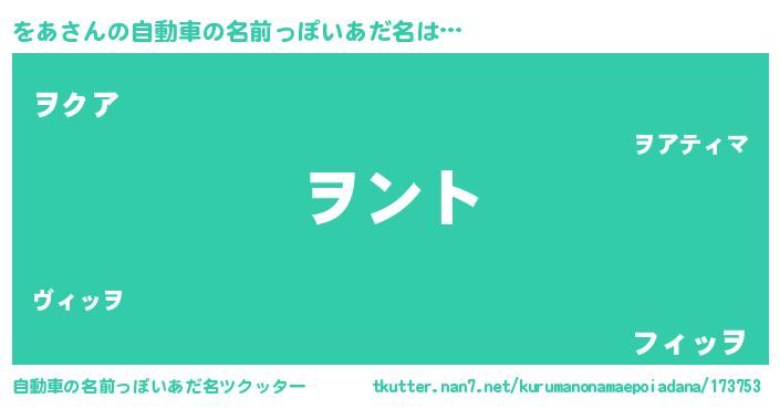 をあさんの自動車の名前っぽいあだ名をツクッター!