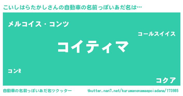 | ヒーロー風カッコイイあだ名 | 『スーパーコイシハラタカシ』 |