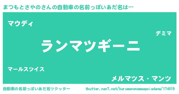 | 欧米人風あだ名 | 『アンジェラ・まつもとさやの』 |
