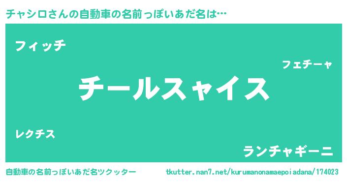 | ヒーロー風カッコイイあだ名 | 『慈愛の使者チャシロ』『ネオチャシロ』 |