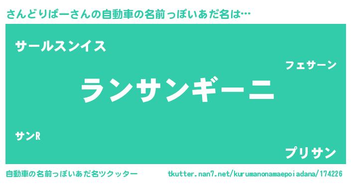 | 欧米人風あだ名 | 『アンジェラ・さんどりばー』 |