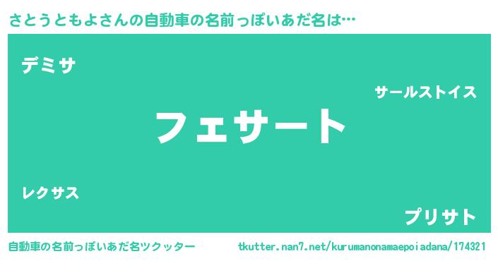 | 胡散臭い通販商品みたいなあだ名 | 『来世でも幸せになれる水素水…その名も「さとうともよ」』 |