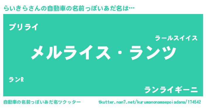 らいきらさんの自動車の名前っぽいあだ名をツクッター!