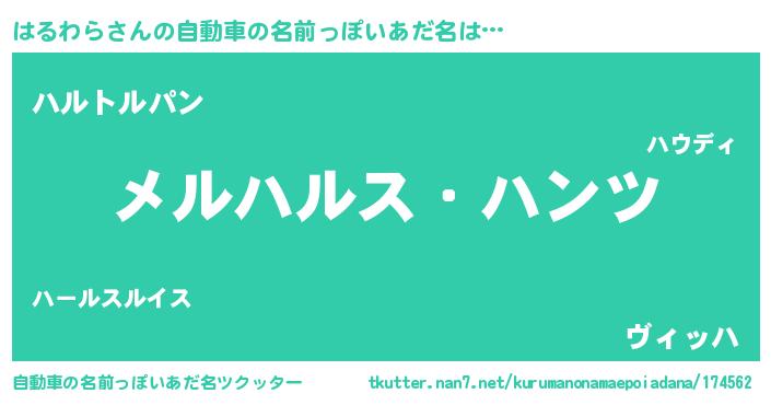 | 男性向けラノベタイトル風あだ名 | 『Re:はるわらから始める異世界生活』 |