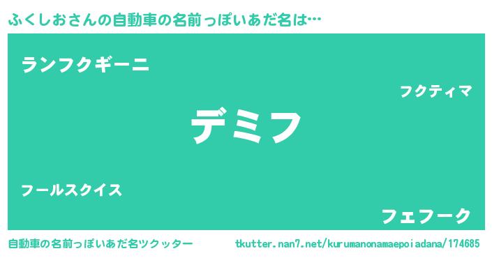 | 男性向けラノベタイトル風あだ名 | 『ふくしおという概念が存在しない退屈な世界 』 |