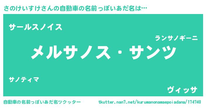 | 男性向けラノベタイトル風あだ名 | 『Re:さのけいすけから始める異世界生活』 |