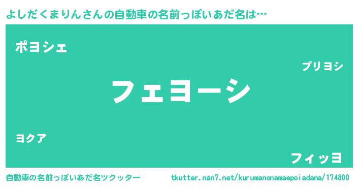 | 欧米人風あだ名 | 『よしだくまりん・ステッグマイヤー』 |