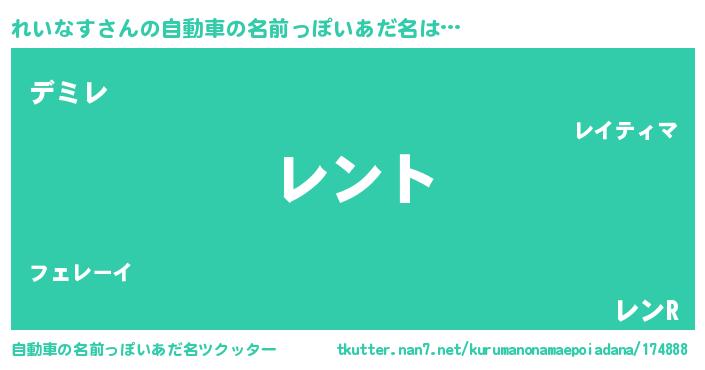 | 男性向けラノベタイトル風あだ名 | 『れいなすの嫁は女の子じゃないと思った?』 |
