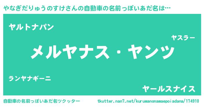 | 男性向けラノベタイトル風あだ名 | 『Re:やなぎだりゅうのすけから始める異世界生活』 |